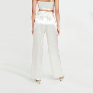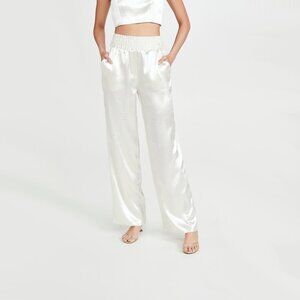 NWT Cinq à Sept ivory shiny wide leg pants, XS
