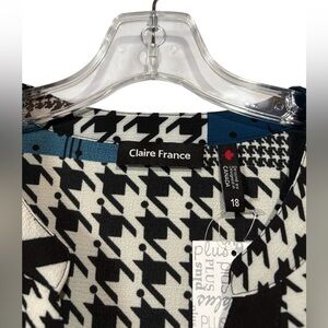 NWT, Claire France, Plus Size Patchwork Blouse, 18W, Black, White, Blue