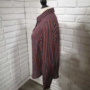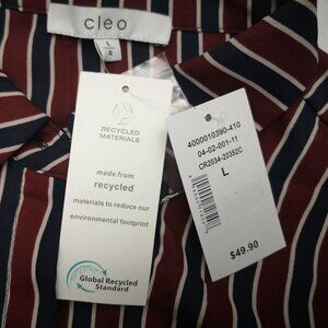 NWT Cleo Ladies Size Large Navy Burgundy Cream Striped Loose Fit Blouse