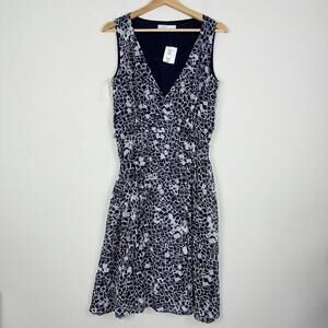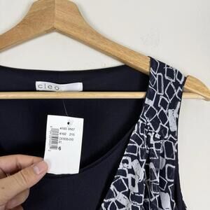 NWT Cleo Sleeveless Wrap Dress Abstract Print Size 6 Navy White Lined Geometric