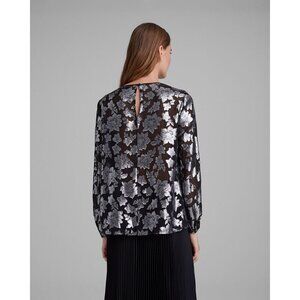 NWT Club Monaco black & silver metallic fibre burnout floral print sheer blouse