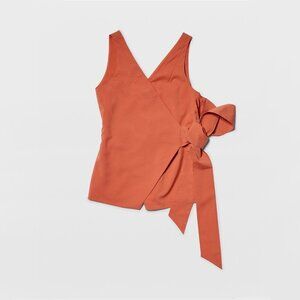 NWT Club Monaco burnt orange V-neck crossover belt-tie sleeveless blouse top