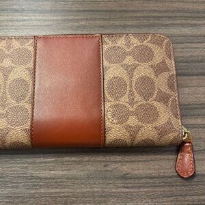 NWT Coach Accordion Zip Wallet In Colorblock Signature Canvas Tan