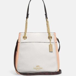 NWT Coach Cammie Chain Bucket Bag Colorblock shoulder|crossbody gold/white