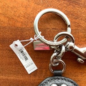 NWT Coach black heart pouch with rivets. Key ring and dog leash clip. Beautiful pebbled leather and quality hardware. Sold out and hard to find.
