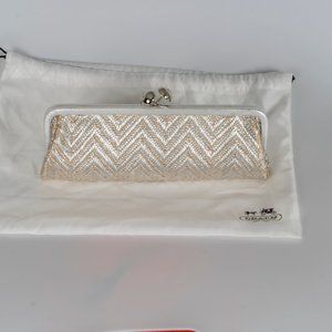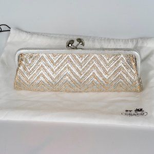 NWT Coach metallic straw clutch