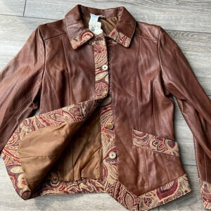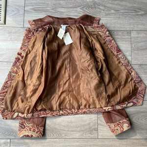 NWT Coldwater Creek Tapestry Trim Leather Jacket