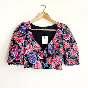 NWT Colourful Floral Pink Blue Puff Sleeve Cropped Top XS