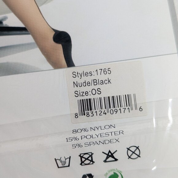 NWT Coquette Hosiery backseam stocking nude + black, one size style 1765