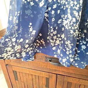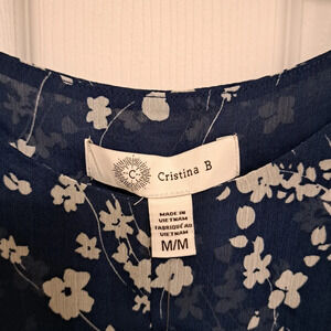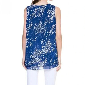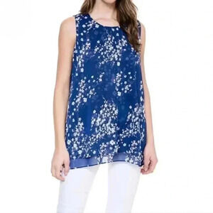 NWT Cristina B Floral Sleeveless Top Size Medium Blue White Flowy Tunic Blouse