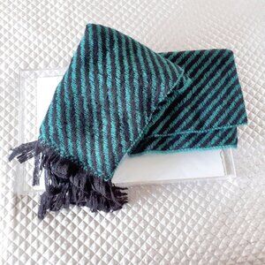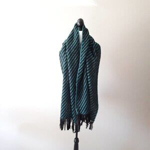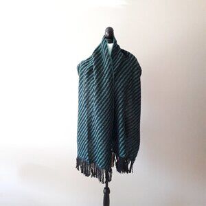 NWT Cristina Chiti black and teal turqouise diagonal stripe wool blend large scarf, shawl