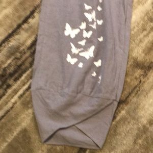 NWT E Retro cropped pants with cheerful butterfly graphics. Wide legged tulip cuff cropped. Size medium with elastic waist.