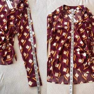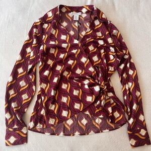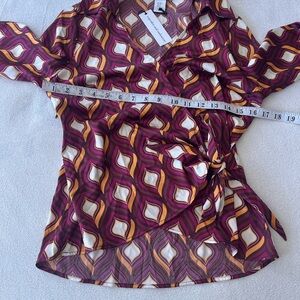 NWT Cupcakes & Cashmere Retro Geo Print Faux Wrap Blouse XS