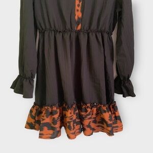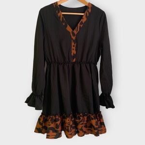 NWT Cupshe Leopard Print Trumpet Sleeve Mini Dress Sz M