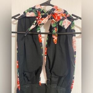 NWT Cupshe Halter Tie Plunge Floral Beachy One Piece Bathing Suit