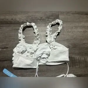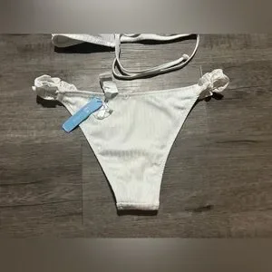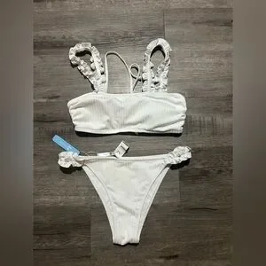NWT Cupshe White Ruffle Ribbed Bikini S