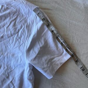 Adorable white short sleeve T-shirt with double heart beaded patch on the chest by Cynthia Rowley. Features pink, red, and crystal beadwork for a playful, sparkly look.