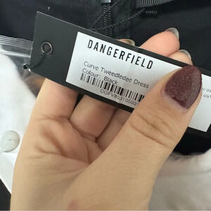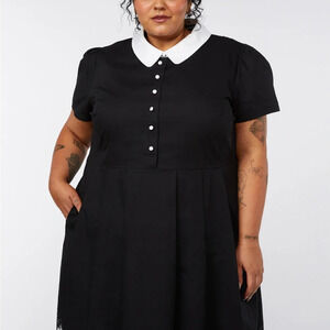 NWT DANGERFIELD Tweedledee Dress Black Short Sleeve Dress White Collar 22