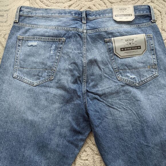 NWT DENIM GOLD Distressed straight leg high rise jeans size 40w 32L @U