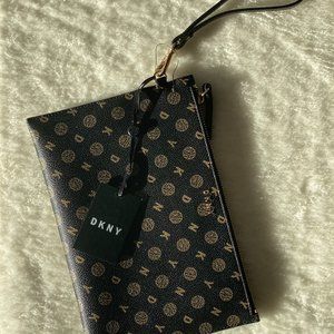 Brand new black wristlet with the DKNY heritage logo in tan. Retails for $139 Cad!