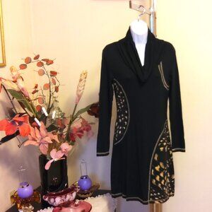 NWT DOLCE VITA Unique Designed Black Stretchy Well Tailored Quality Dress Long Sleeve Spring Fall Winter Dresses Size S fit for 4 or 6