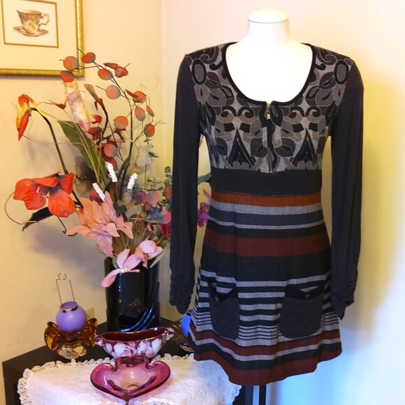NWT DOLCEZZA Unique Designed Stretchy Cardigan Knit Dress Size M