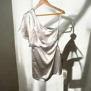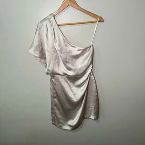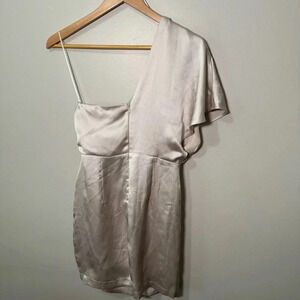 NWT DYNAMITE ONE SHOULDER SATIN MINI DRESS POLISHED PEARL S