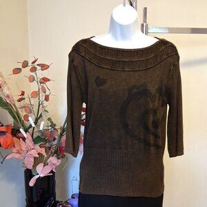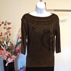 NWT Dark Brown 3/4 Sleeves Cardigan Knitwear Lightweight Ladies Sweater