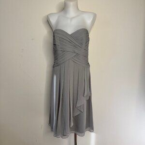 NWT David's Bridal F14847 Short Crinkle Chiffon Dress Front Cascade Mercury 10
