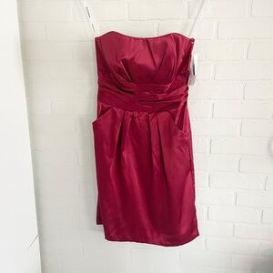 NWT David’s Bridal Mini Dress Strapeless or not Pockets Cherry red Sz 8