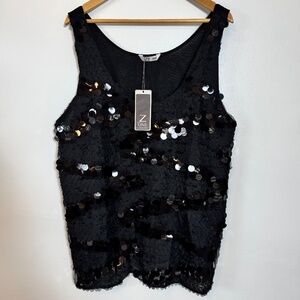 NWT Dazzling Black Sequin Tank Top, Z-One Zabaione Women's Size XL (EU 48/50)