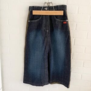 NWT Dead stock DKNY Y2K Denim Faux Suede Column skirt Grungy Artsy Dark wash S