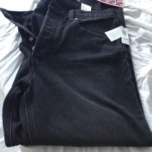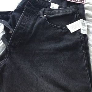Button fly and five pocket styling with an 11 inch rise.