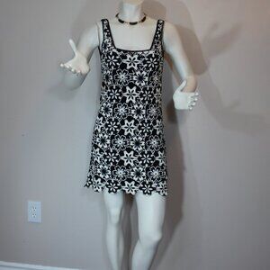 NWT Desigual Daisies Black Retro Short Crochet lined sleveless Dress size small