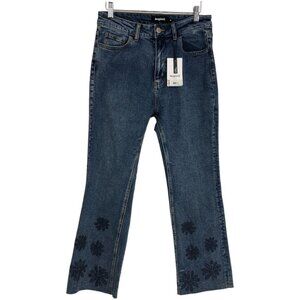 NWT Desigual Medium Wash Floral Embroidered Flared Jeans size 6