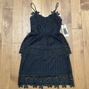 NWT Dex Black Tiered Lace polka dot mini Dress spaghetti straps size XS