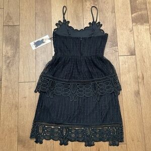 NWT Dex Black Tiered Lace polka dot mini Dress spaghetti straps size XS