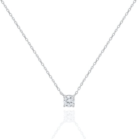 Material: 925 Sterling Silver Rhodium Plated Necklace featuring a 0.5ct lab diamond solitaire in a 4-prong setting. Diamond Cut RBC (Round Brilliant Cut).