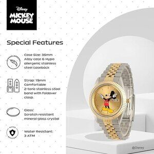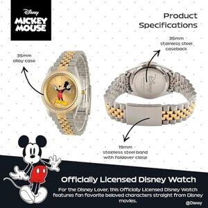 QUALITY MATERIALS - This Disney watch is crafted with the highest quality Stainless Steel Case and Bracelet with a precise Japanese Quartz Movement for accurate time keeping. It also features a Push Button Deployment Clasp to protect the clasp from ever opening. This watch also features a scratch-resistant mineral crystal to help protect your timepiece.