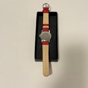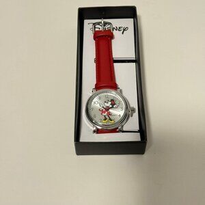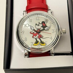 NWT - Disney Minnie Mouse Silver watch for ladies, Vintage style. Red leather st