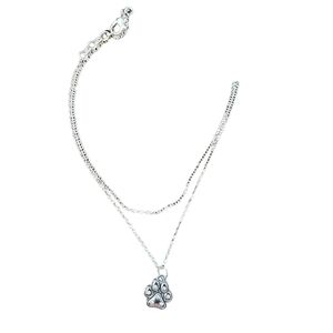 For puppy lovers! Have some fun with this charming dog paw charm necklace that easily converts into a trendy anklet! This handmade accessory features a cute crystal dog pad charm on an adjustable silver plated chain that can be worn two ways.