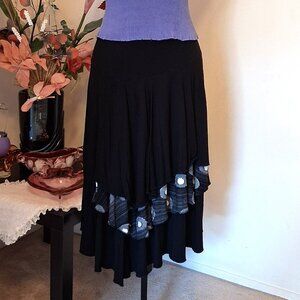 NWT Dolcezza Elegant Black Gray White Linted Tiered Pleated Midi Skirt Women's Fall Winter Skirts Tag Size S could fit for 12