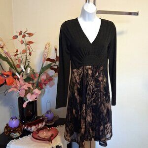 NWT Dolcezza Women's Unique Designed Long Sleeve V Neck Gray Midi Dress Size S could fit for 4 or 6
