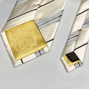 Color/Pattern: Ivory with silver and black diagonal stripes Gold lining with embroidered crest