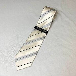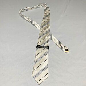 NWT Donald J. Trump Signature Collection Mens Silk Necktie Striped White Silver