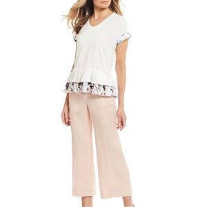 NWT Donna Karan New York Modal Morning Dew Ruffle and floral trim top Sz M