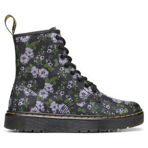 Floral prints have long added a subversive, grunge edge to Dr. Martens' women's footwear. These boots are made with Hydro PU-coated leather and adorned with a primrose floral design. They are tagged with the brand's black and yellow heel loop and finished with their signature yellow stitching.