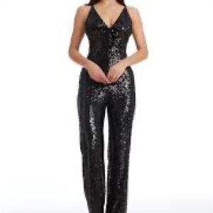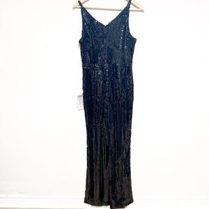 NWT Dress the Population Charlie Plunging Sequin Jumpsuit Sz M