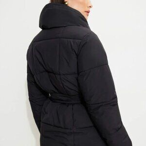 NWT Dynamite Belted Midi Puffer Jacket - black, size S