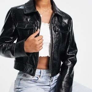 NWT Dynamite Mocha Brown Croc-Embossed Faux Leather Blazer/Jacket